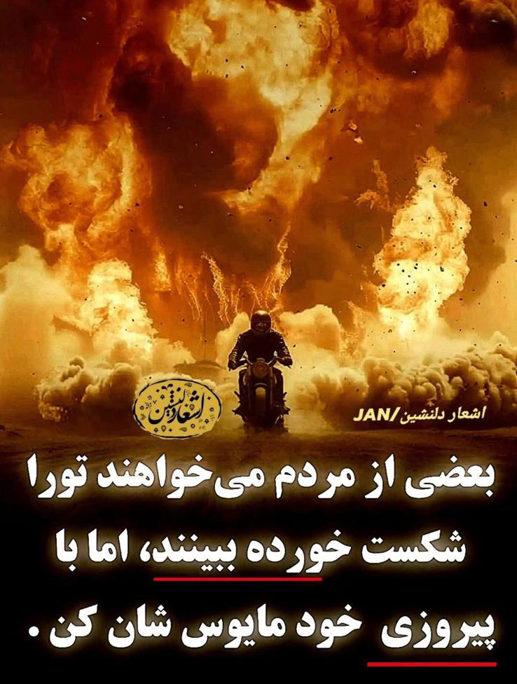 در عکسنوشتهای که او ساعتی پیش نشر کرد، آمده است: «بعضی از مردم میخواهند تو را شکست خورده ببینند، اما با پیروزی خود مایوسشان کن.» در این عکس نوشته، همانند فلمهای هالیوود، مردی دیده میشود که کلاه ایمنی بر سر دارد و با موترسایکل خود در حالی که پشت سرش آتش وحشتناکی فروزان است، قهرمانوار بیرون میآید.